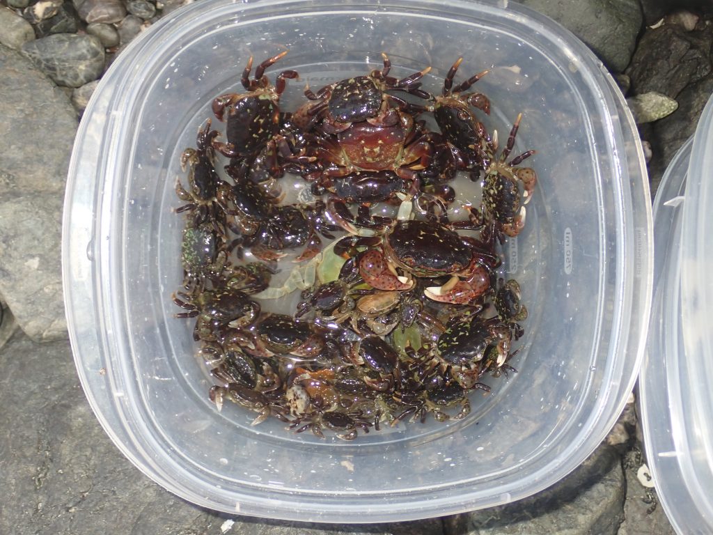 A collection of purple and hairy shore crabs for Anissa’s Research Project (Photo by Lars)
