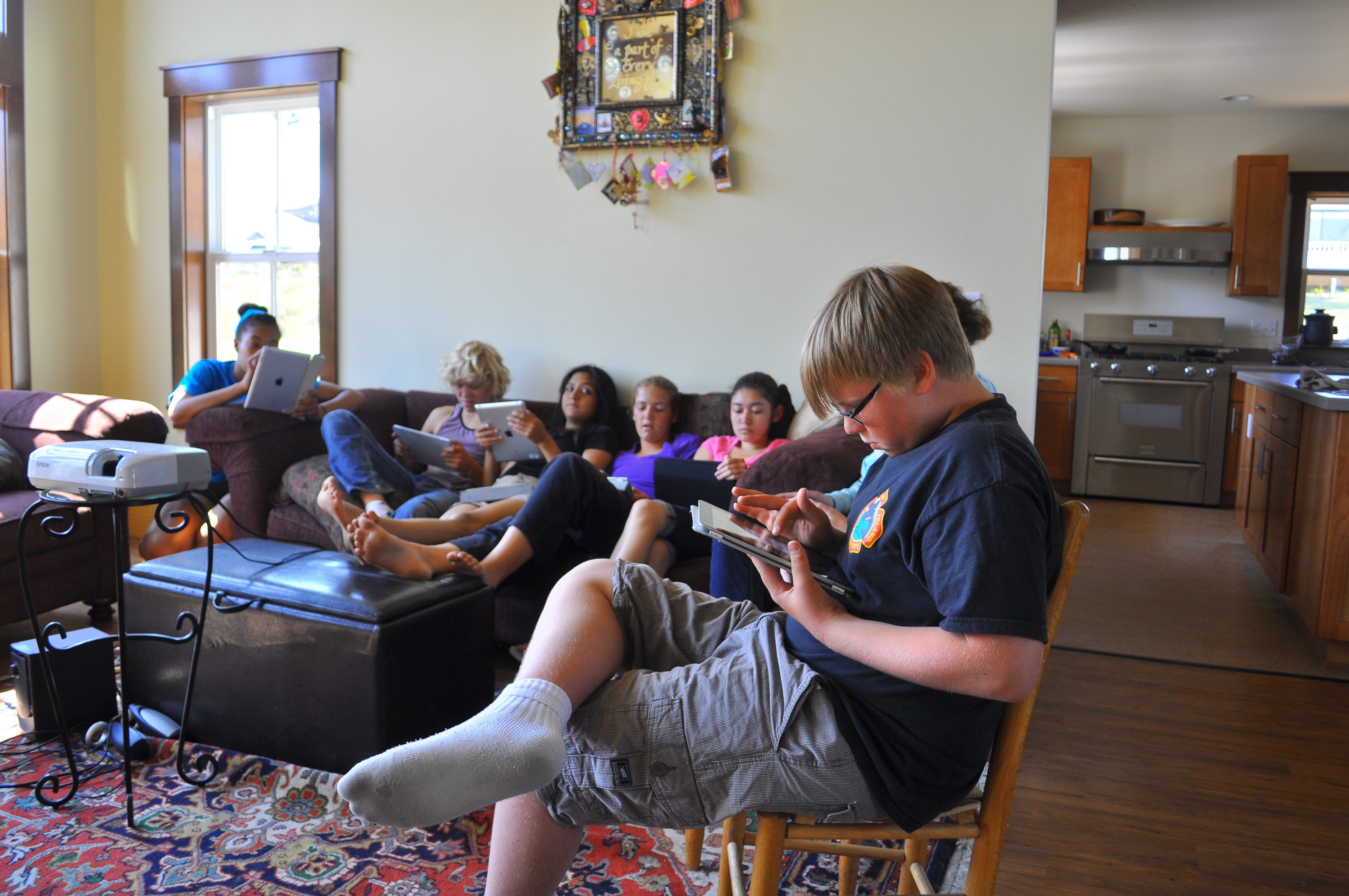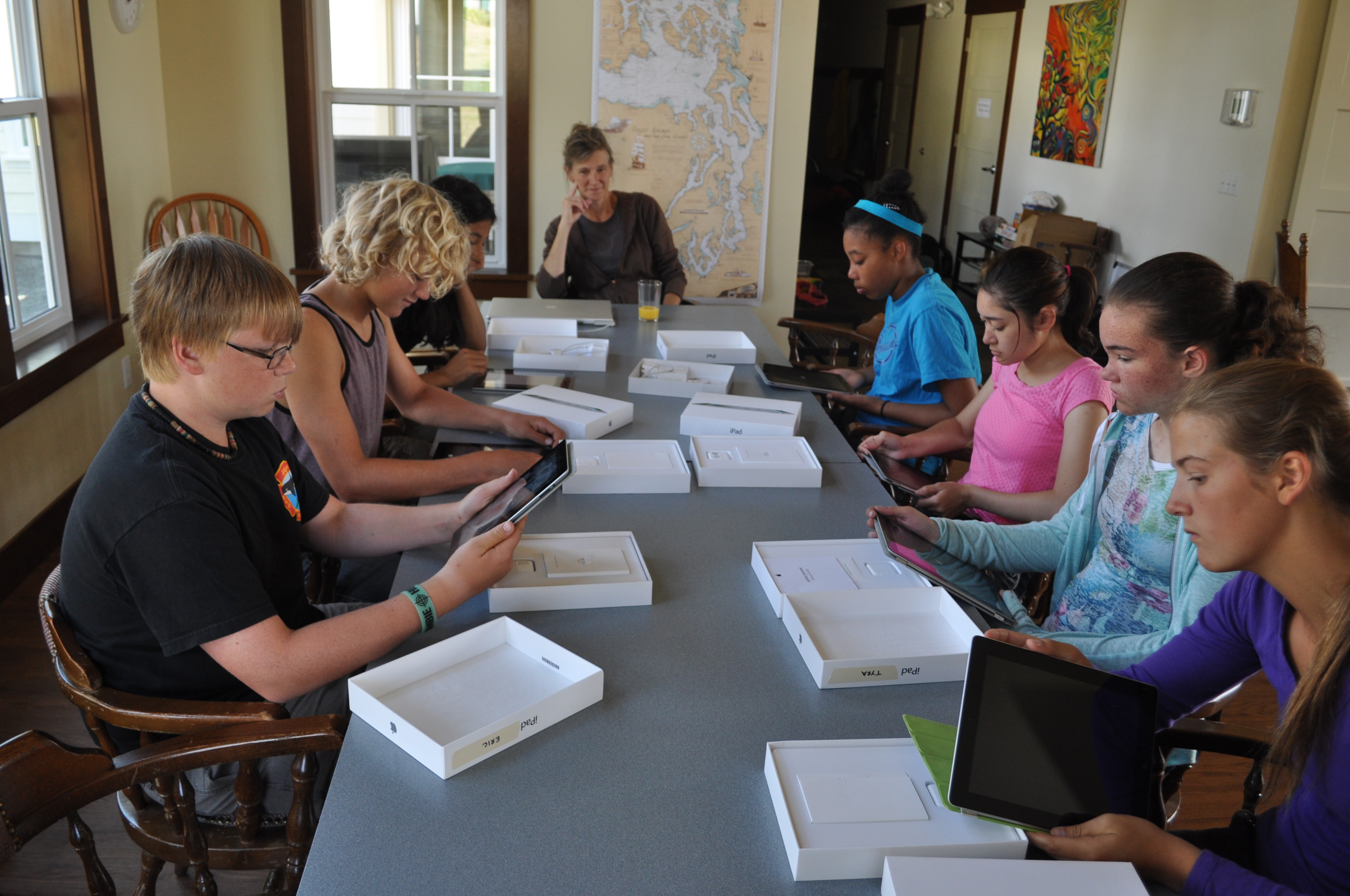 Being considerate, Caroline let us sleep in after a late night at the play, which led to a nice brunch of chocolate chip pancakes and eggs with cheese. Afterwards,we had down time to either go to the Art Market or walk around town. When we got back to the dorm, we were surprised to get iPads from the Friday Harbor Laboratories for our documentary on tide pools. Tom gave us an introduction to how to document the photos we took.