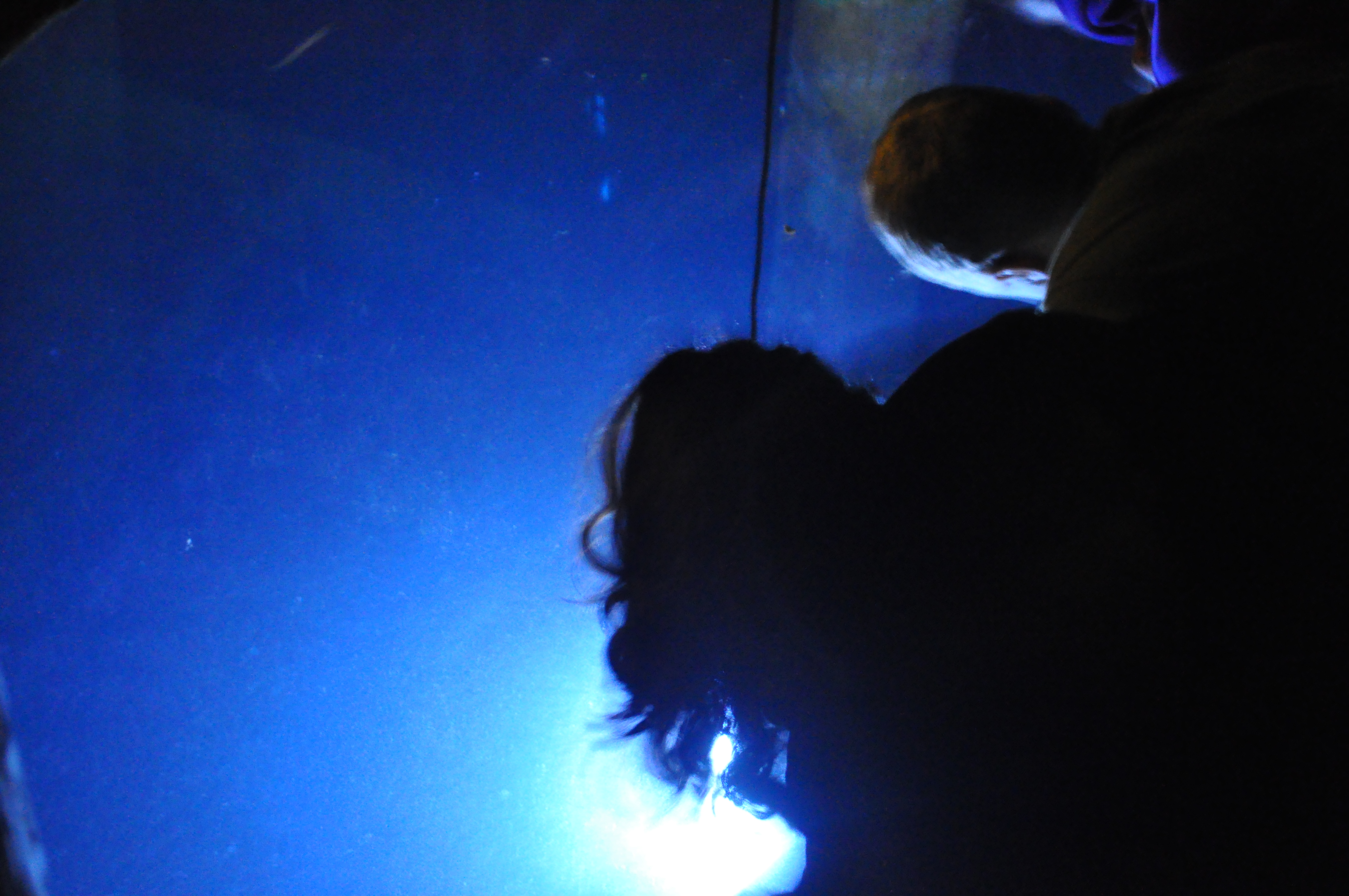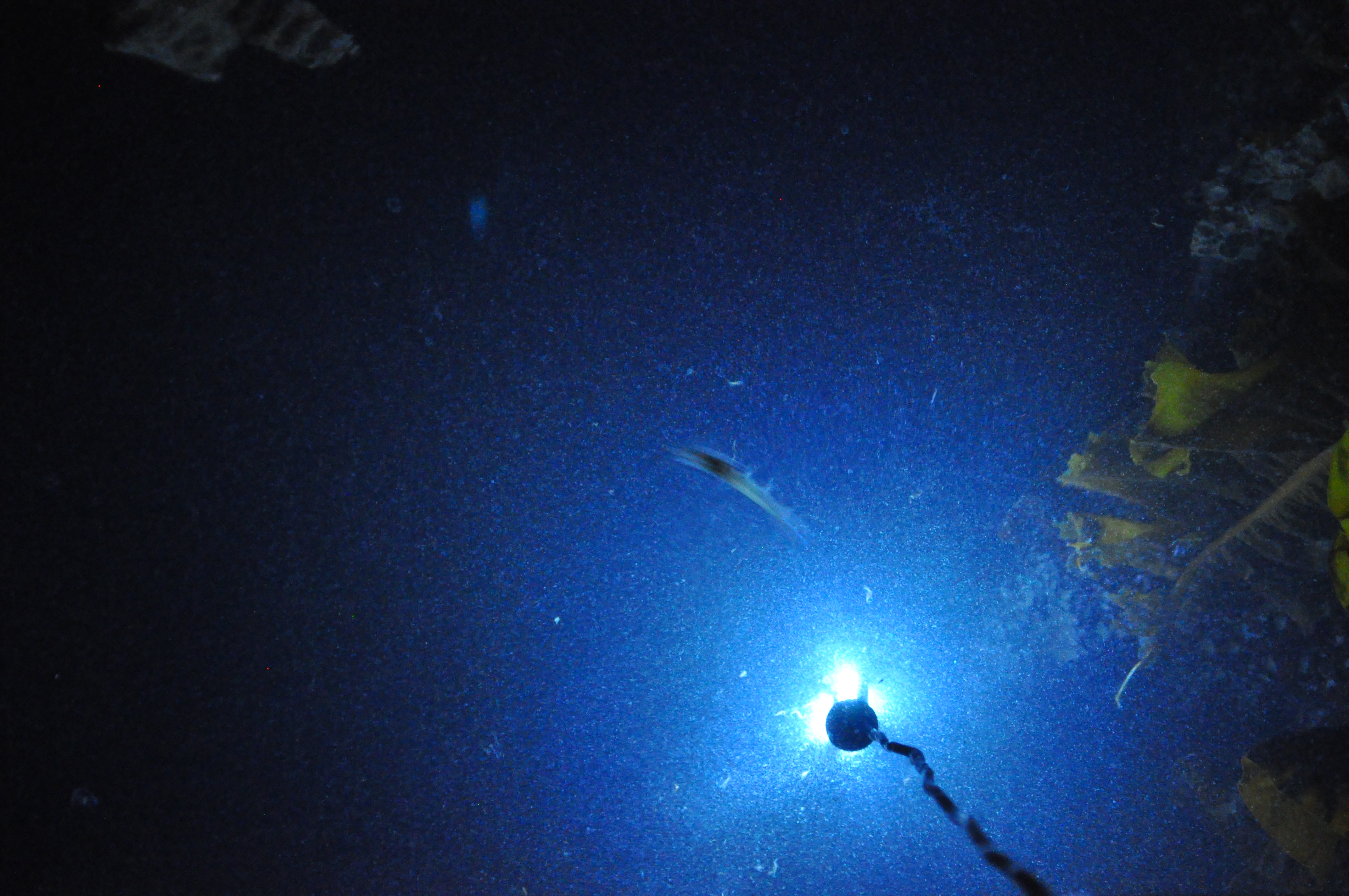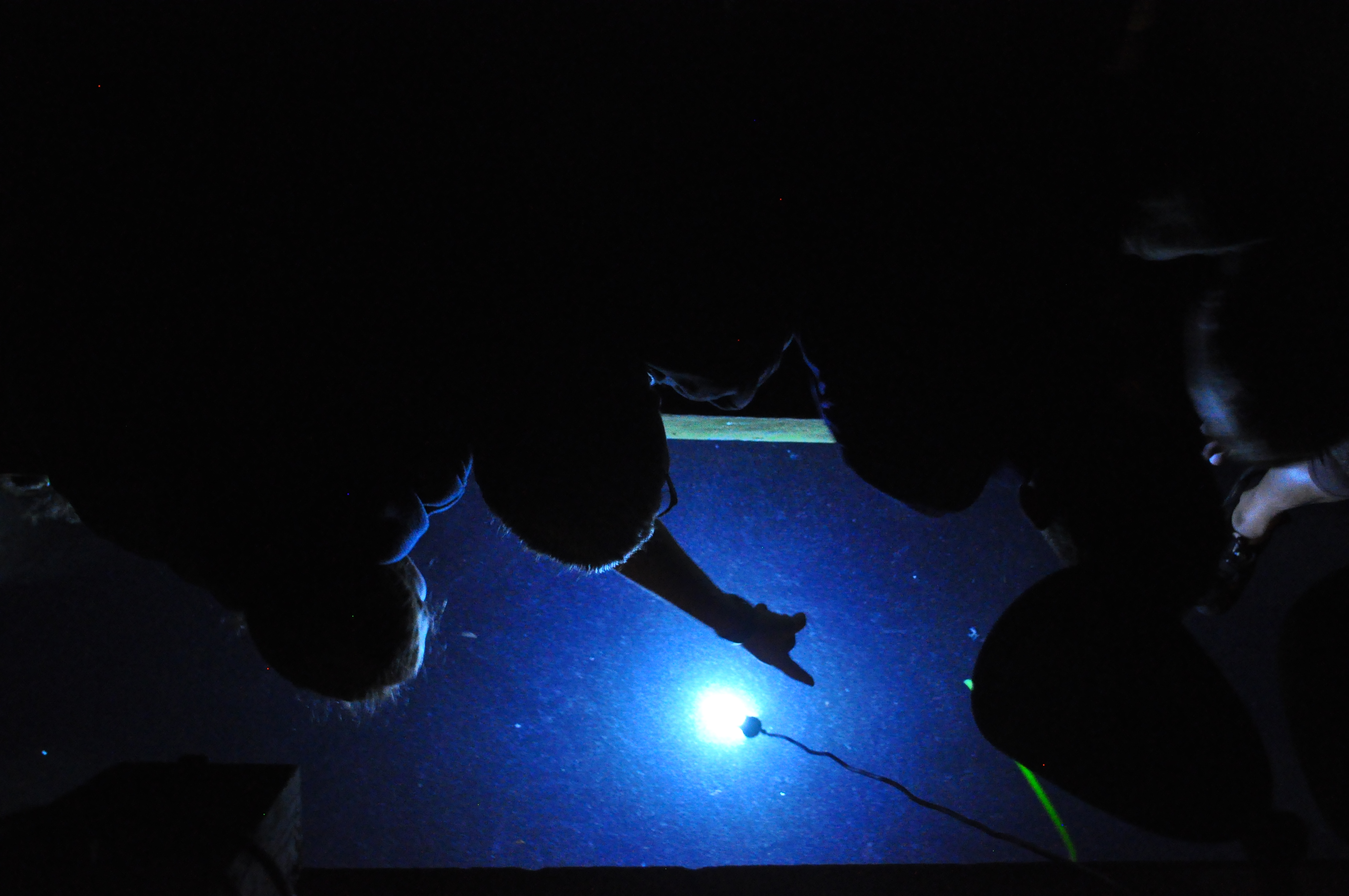 After our guests departed, we loaded into the van for one last trip over to the Friday Harbor Laboratories to experience the time-honored Labs tradition of night lighting. Our coastal oceans are filled with light-sensing zooplankton and other animals; hanging a waterproof light over the side of the dock slowly attracts them to the surface and illuminates other organisms that happen to be nearby. All were delighted when Labs residents Stephanie Crofts, Orissa Moulton and their colleague Connie Sullivan met us on the docks (at 10:30 pm) to share some insights into the creatures emerging from the darkness.