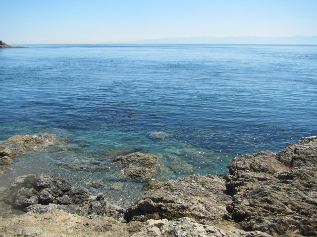 At the Land Bank, we also had the opportunity to learn about random sampling and how to find population density. Tim B. set up an exercise for us to practice this skill by placing dominoes in a field for us to find the size and density of the population using sampling. While we were doing this, we were lucky enough to spot some minke whales swimming in the foreground of Vancouver Island.