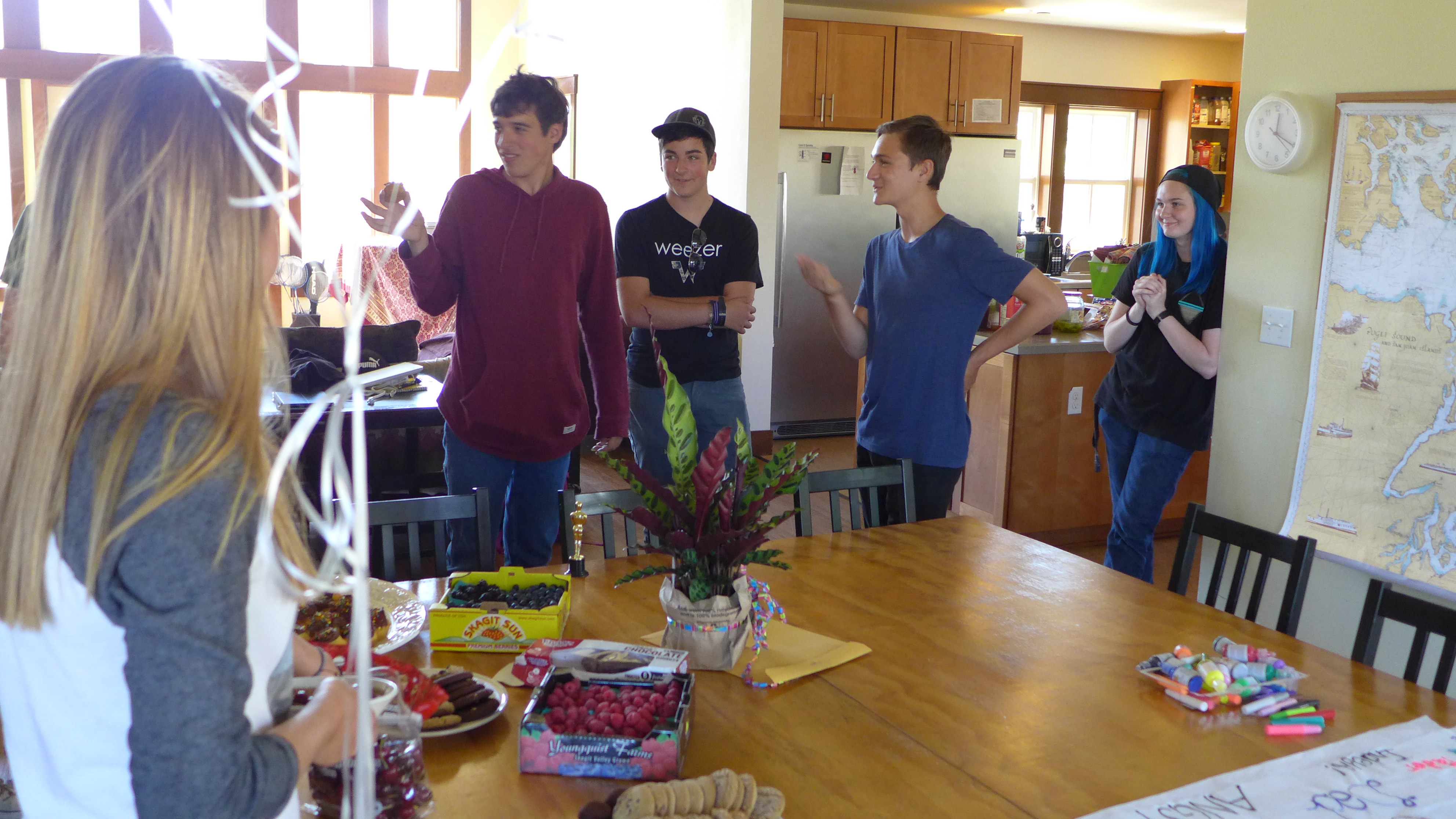 Quinn is officially 16! Happy birthday dad!! We created a giant card for him and had cupcakes, cookies, brownies, and fresh Skagit Valley blueberries and raspberries.