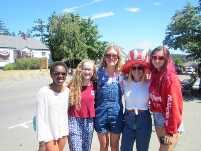 These patriotic words started our morning on the Fourth of July as Tim Dwyer recited the Declaration of Independence to help remind us of the true meaning of Independence and what kind of emotions the American colonists felt more than 200 years ago. After a quick yet inspiring review discussion on the American Revolution, we all put on our red, white, and blue to show off our patriotic pride. The Salish Sea Sciences students sat along the curb in front of the Spring Street school alongside hundreds of other people to watch the highly anticipated town parade. We all waved our flags and cheered on the countless floats and organizations found in Friday Harbor.